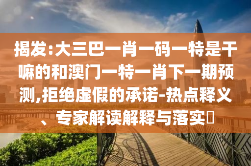 揭發:大三巴一肖一碼一特是干嘛的和澳門一特一肖下一期預測,拒絕虛假的承諾-熱點釋義、專家解讀解釋與落實?