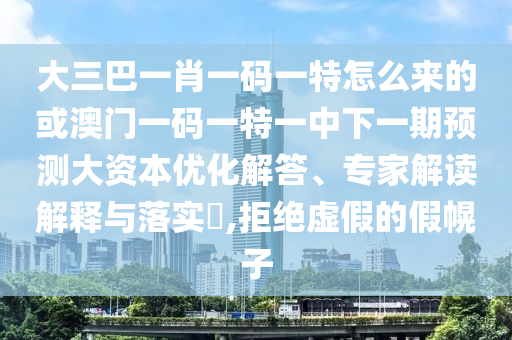 大三巴一肖一碼一特怎么來的或澳門一碼一特一中下一期預測大資本優化解答、專家解讀解釋與落實?,拒絕虛假的假幌子