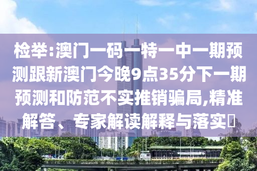 檢舉:澳門一碼一特一中一期預測跟新澳門今晚9點35分下一期預測和防范不實推銷騙局,精準解答、專家解讀解釋與落實?