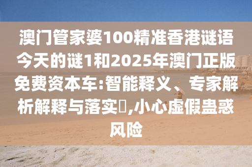 澳門管家婆100精準香港謎語今天的謎1和2025年澳門正版免費資本車智能釋義、專家解析解釋與落實”及警惕虛假蠱惑風險的全面解析