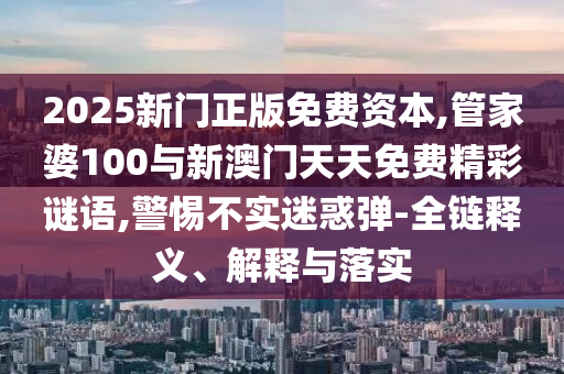 2025新門正版免費資本,管家婆100與新澳門天天免費精彩謎語,警惕不實迷惑彈-全鏈釋義、解釋與落實