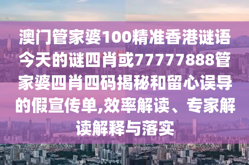 澳門管家婆100精準香港謎語今天的謎四肖或77777888管家婆四肖四碼揭秘和留心誤導的假宣傳單,效率解讀、專家解讀解釋與落實