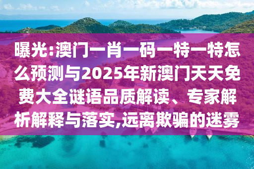曝光:澳門一肖一碼一特一特怎么預測與2025年新澳門天天免費大全謎語品質解讀、專家解析解釋與落實,遠離欺騙的迷霧