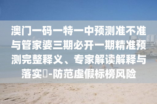 澳門一碼一特一中預測準不準與管家婆三期必開一期精準預測完整釋義、專家解讀解釋與落實?-防范虛假標榜風險