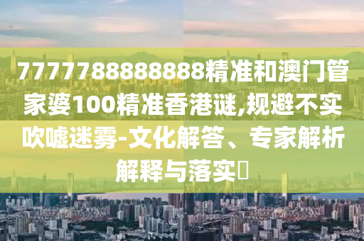 7777788888888精準和澳門管家婆100精準香港謎:文化解答、專家解析解釋與落實?
