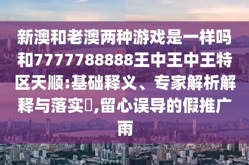 關于新澳和老澳兩種游戲是否一樣,以及“7777788888王中王中王特區天順”等相關關鍵詞的基礎釋義、專家解析解釋與落實,以及對于公眾可能遭遇的虛假宣傳的警惕提示,以下為您詳細闡述。