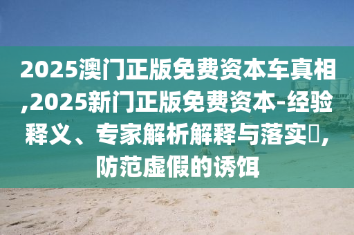 2025澳門正版免費資本車真相,2025新門正版免費資本-經驗釋義、專家解析解釋與落實?,防范虛假的誘餌