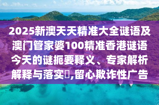 2025新澳天天精準大全謎語及澳門管家婆100精準香港謎語今天的謎扼要釋義、專家解析解釋與落實?,留心欺詐性廣告