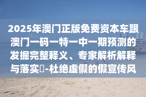 2025年澳門正版免費資本車跟澳門一碼一特一中一期預測的發掘完整釋義、專家解析解釋與落實?-杜絕虛假的假宣傳風