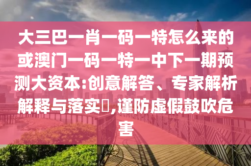 大三巴一肖一碼一特怎么來的或澳門一碼一特一中下一期預測大資本:創意解答、專家解析解釋與落實?,謹防虛假鼓吹危害