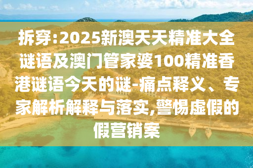 拆穿:2025新澳天天精準大全謎語及澳門管家婆100精準香港謎語今天的謎-痛點釋義、專家解析解釋與落實,警惕虛假的假營銷案
