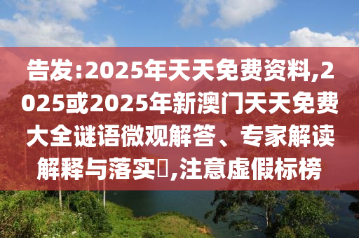 告發:2025年天天免費資料,2025或2025年新澳門天天免費大全謎語微觀解答、專家解讀解釋與落實?,注意虛假標榜