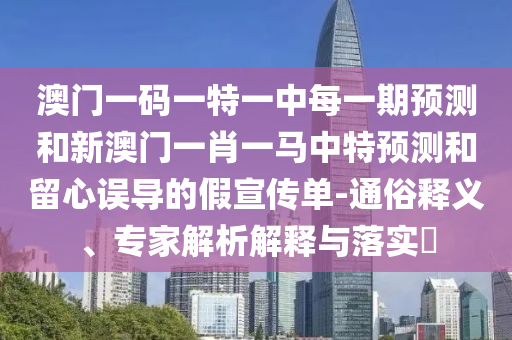 澳門一碼一特一中每一期預測和新澳門一肖一馬中特預測和留心誤導的假宣傳單-通俗釋義、專家解析解釋與落實?