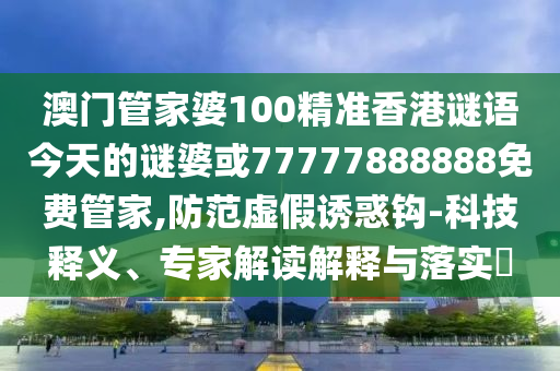 澳門管家婆100精準(zhǔn)香港謎語今天的謎婆或77777888888免費管家,防范虛假誘惑鉤-科技釋義、專家解讀解釋與落實?
