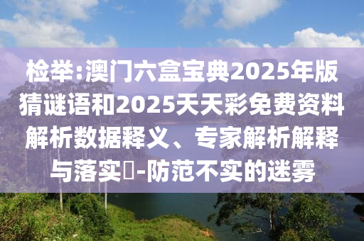 檢舉:澳門六盒寶典2025年版猜謎語和2025天天彩免費資料解析數據釋義、專家解析解釋與落實?-防范不實的迷霧