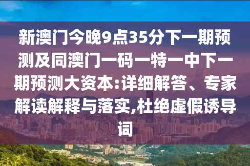 新澳門今晚9點35分下一期預(yù)測及同澳門一碼一特一中下一期預(yù)測大資本:詳細解答、專家解讀解釋與落實,杜絕虛假誘導(dǎo)詞