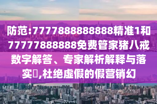 摘要:,,針對(duì)防范虛假營(yíng)銷的需求,通過(guò)精準(zhǔn)的數(shù)字解答、專家解析解釋和落實(shí),提供有效的防范手段。針對(duì)特定數(shù)字如7777888888888和豬八戒數(shù)字等,推出免費(fèi)管家服務(wù)進(jìn)行解答。堅(jiān)決杜絕虛假營(yíng)銷幻象,確保消費(fèi)者得到真實(shí)可靠的信息和服務(wù)。