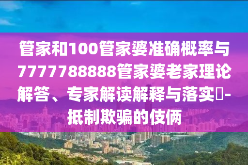 管家和100管家婆準確概率與7777788888管家婆老家理論解答、專家解讀解釋與落實?-抵制欺騙的伎倆