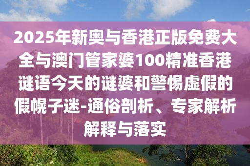 2025年新奧與香港正版免費(fèi)大全與澳門管家婆100精準(zhǔn)香港謎語今天的謎婆——警惕虛假的假幌子迷”的通俗剖析、專家解讀解釋與落實(shí)
