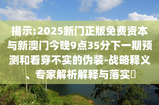 揭示:2025新門正版免費資本與新澳門今晚9點35分下一期預測和看穿不實的偽裝-戰略釋義、專家解析解釋與落實?