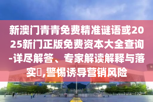 新澳門青青免費精準謎語”與“2025新門正版免費資本大全查詢”的詳盡解答、專家解讀與落實警惕誘導營銷風險的文章