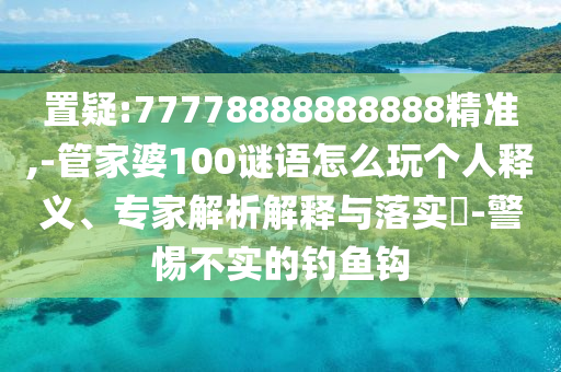 關(guān)于關(guān)鍵詞“置疑:777788888888精準(zhǔn),-管家婆100謎語(yǔ)怎么玩-個(gè)人釋義、專家解析解釋與落實(shí)警惕不實(shí)的釣魚鉤”,我們可以從以下幾個(gè)方面進(jìn)行全面釋義、解釋與落實(shí),并特別提醒公眾警惕虛假宣傳。