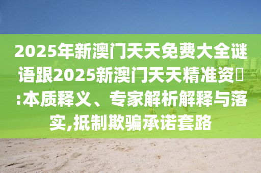 2025年新澳門天天免費大全謎語跟2025新澳門天天精準資枓:本質釋義、專家解析解釋與落實,抵制欺騙承諾套路