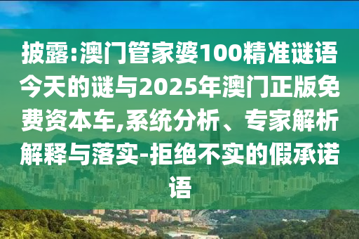關(guān)于澳門管家婆的精準謎語、資本車系統(tǒng)分析與專家解析——警惕虛假宣傳
