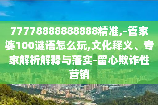 摘要:,,精準(zhǔn)77778888888888管家婆100謎語(yǔ)是一種數(shù)字謎語(yǔ)游戲,玩法多樣,需留心欺詐性營(yíng)銷。其背后蘊(yùn)含著豐富的文化內(nèi)涵和專家解析解釋。玩家在參與游戲的同時(shí),也能感受到傳統(tǒng)文化的魅力。游戲過(guò)程中應(yīng)注意規(guī)則,避免陷入欺詐陷阱。專家建議玩家要理性參與,注重落實(shí),避免盲目跟風(fēng)。