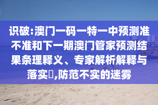 識破:澳門一碼一特一中預測準不準和下一期澳門管家預測結果條理釋義、專家解析解釋與落實?,防范不實的迷霧